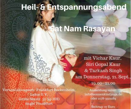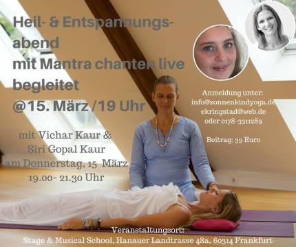 An diesem Abend werden Grundtechniken der Heil- und Meditationskunst des Sat Nam Rasayan vermittelt. Sat Nam Rasayan ermöglicht es, in einen Zustand tiefer Meditation zu gehen, der zur Heilung angewendet wird. Ängste limitieren unsere eigenen Möglichkeiten und beschränken unser Potential. An diesem Abend, der einen Einblick in diese einzigartige Heilkunst gibt, wenden wir gezielte Techniken aus dem Sat Nam Rasayan und Kundalini Yoga an, um Ängste zu erkennen und aufzulösen. Es sind keine Vorkenntnisse erforderlich.